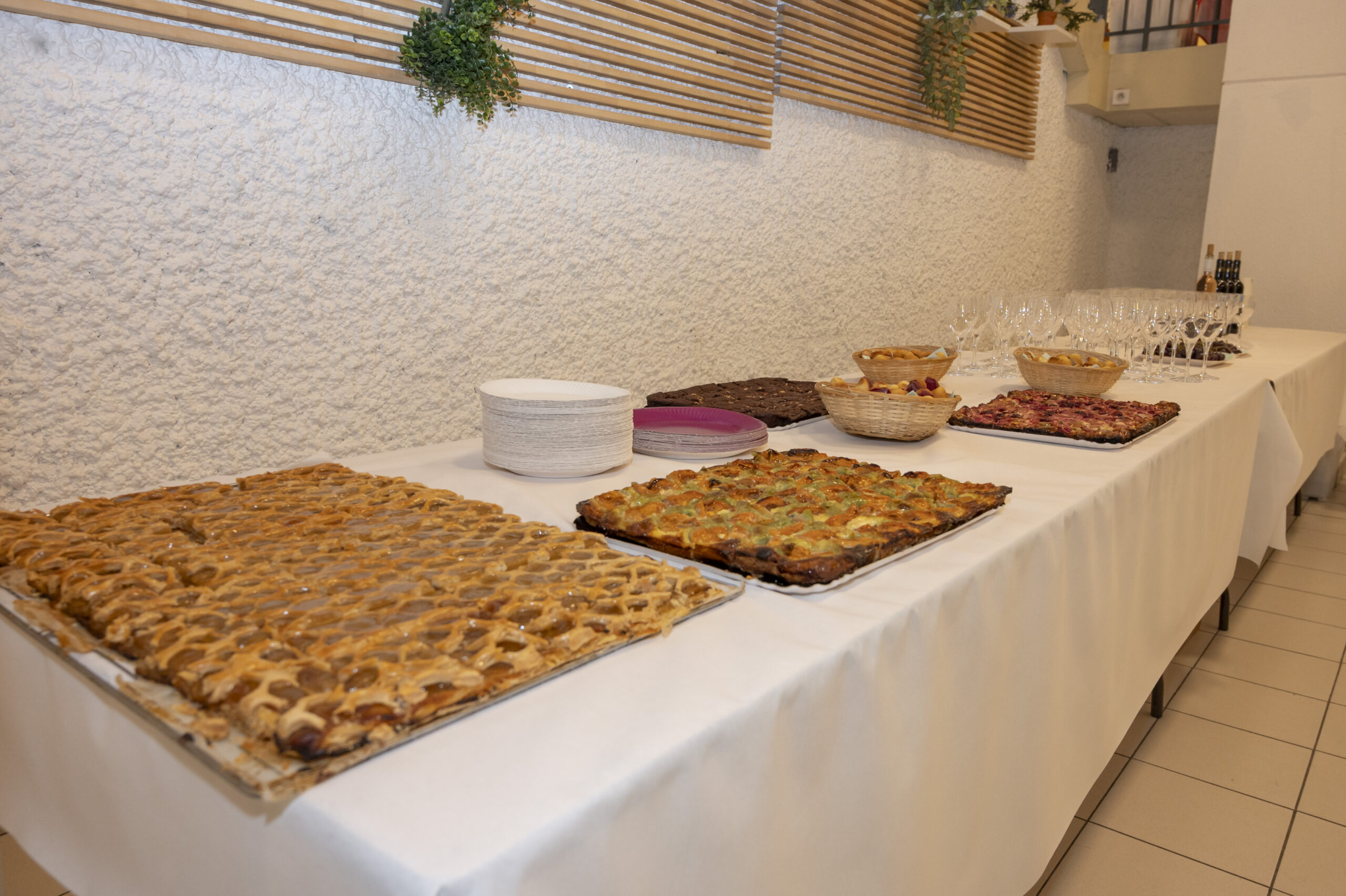 Anna et son équipe de neveux avaient préparés un buffet, liquide et solide somptueux, servi dans les règles de l’art,  Merci! :
