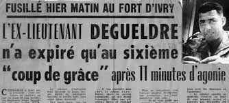 Le 6 juillet 1962, à l’aube, au Fort d’Ivry, Degueldre se présenta devant le peloton d’exécution en tenue de parachutiste, le drapeau tricolore sur la poitrine, drapeau auquel il avait tout sacrifié et qu’il avait choisi comme linceul. Autour de son cou, il avait noué un foulard de la Légion. Dans la poche intérieure de sa vareuse, il y avait la photo d’un bébé, son fils qu’il n’avait jamais vu. Il avait conçu cet enfant dans la clandestinité. Le bébé était venu au monde alors que le père se trouvait dans sa cellule de condamné à mort.