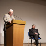 Et puis vint le temps des discours, notre président, Jean-Marie Schmitz, Le général Bruno Dary, ancien COMLE et bien sûr l’impétrant, le Père Yannick Lallemand :