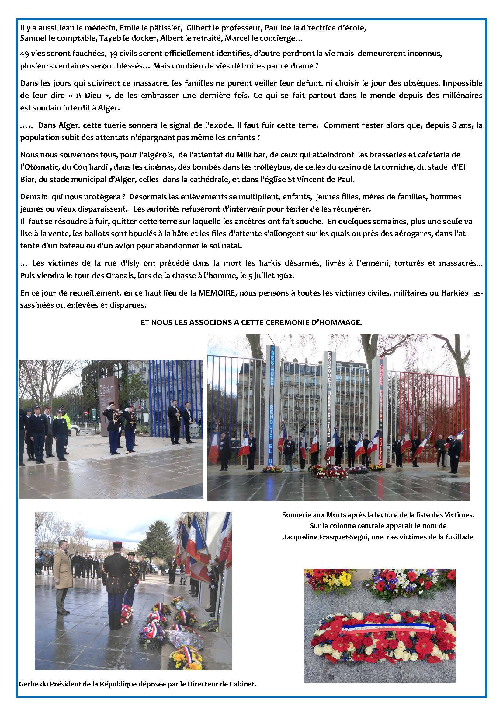 Notre ami, Nicole Ferrandis, nous demande de publier le Compte-rendu complet de la cérémonie du 26 mars commémorant le massacre du 26 mars 1962 de nos amis Pieds-Noirs à Alger.